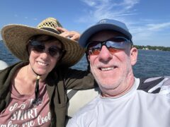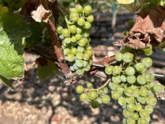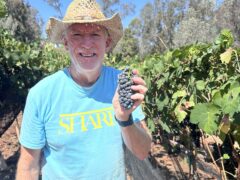 Conveniently nestled a mere 100’ from Paul and Janet’s house is Paul’s pandemic project; a 96 vine garden of tranquility and distraction from the events of those times. It is indeed a hobby vineyard with Chardonnay and Petit Sarah grapes. Paul loves his title of VIGNERON and takes it very seriously as you can tell from the name he chose for the endeavor … Midlife Vineyard & Winery. Our first harvest was in October, 2023 and more than merely drinkable wine resulted. Friends and family rave about our first vintages (as they are expected to do).